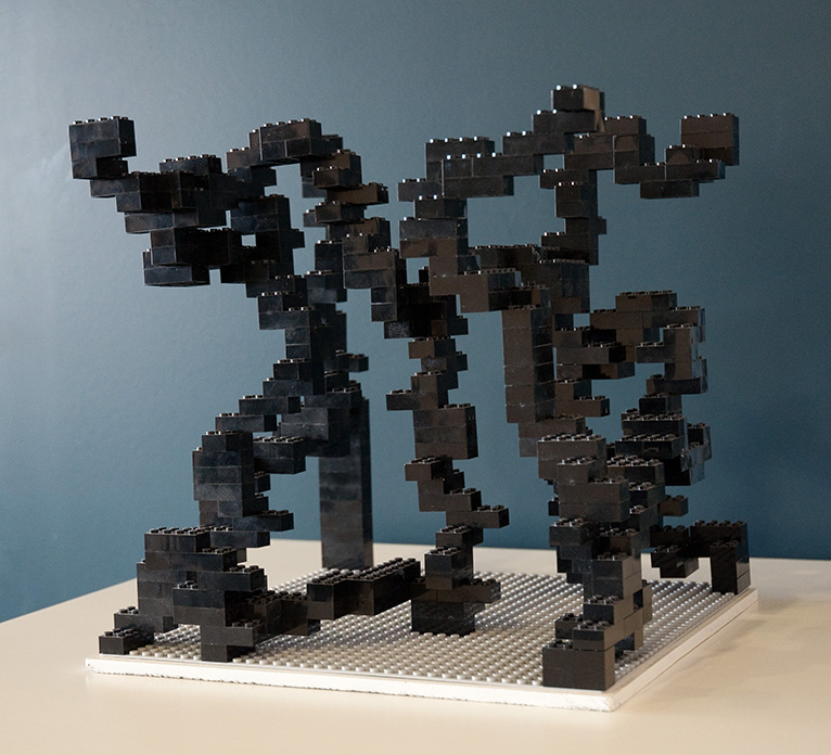 The installation consists of two components, a physical Exiguous Cube constructed out of Lego bricks and a computer program continually generating new Exiguous Cubes.