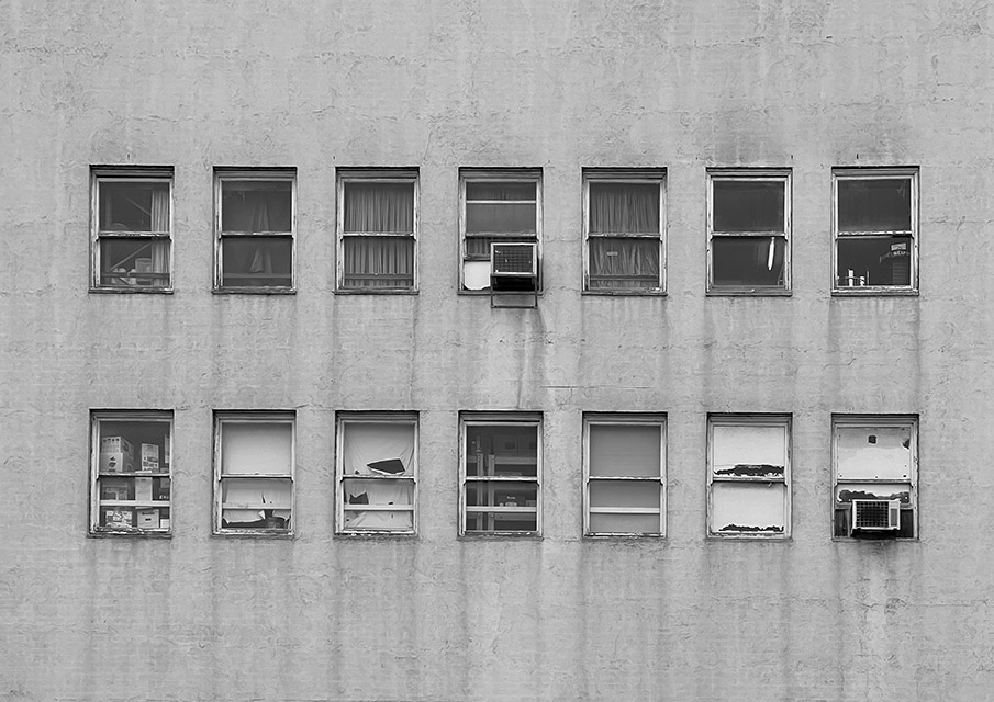 The photographs were converted to black and white, since what is important here is the form, not the colours. Quite a few could not be taken from square on and so were "straightened out" using the Perspective Crop tool in Photoshop. Otherwise they were left alone.