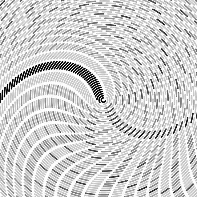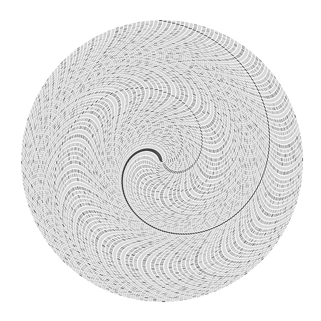 Circular Time is an image made by a computer program written by the artist. It consists of 200 concentric circles, each divided into light and heavy "beats" in analogy with musical rhythm.
